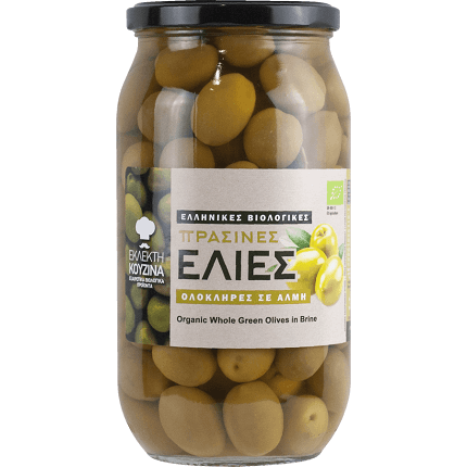 Eλιές πράσινες* 38%, νερό, αλάτι, ξύδι από λευκό κρασί*, ρυθμιστής οξύτητας: γαλακτικό οξύ.
