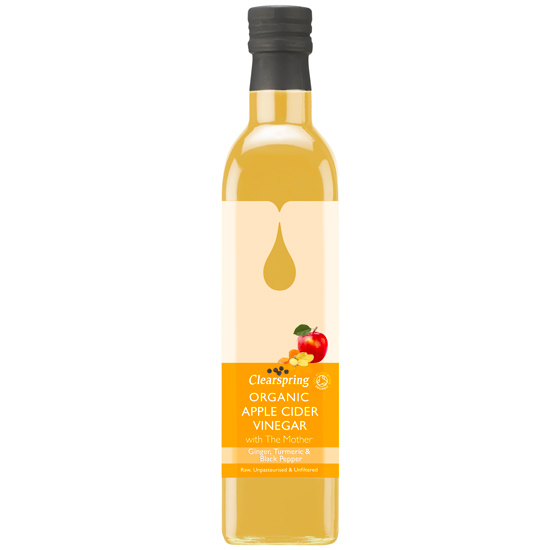 Συστατικά: Μηλόξυδο* (97%), τζίντζερ* (1,9%), κουρκουμάς* (1%), μαύρο πιπέρι* (0,1%). *Βιολογικής καλλιέργειας. 5% οξύτητα.