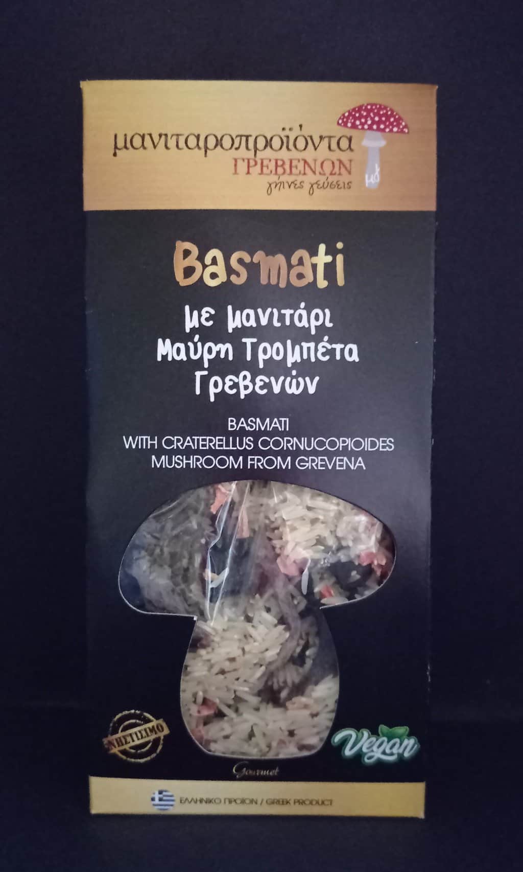 Ένας μοναδικός γευστικός συνδυασμός, το ρύζι Basmati ως << η βασίλισσα των αρωμάτων>>, μιας και είναι το πιο αρωματικό ρύζι, μαζί με την Μαύρη Τρομπέτα, η οποία είναι ένα gourme εδώδιμο μανιτάρι με φρουτώδη γεύση, δίνουν στο πιάτο μας μια ξεχωριστή νότα. 4 μερίδες, έτοιμο σε 15 λεπτά και περιέχει όλα τα υλικά μέσα, προσθέτετε μόνο το νεράκι και το λαδάκι!!!