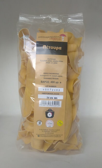 Σπιτικά ζυμαρικά με φρέσκα αυγά, φρέσκο γάλα και 100% άλευρα και σιτηρά από τα Γρεβενά! ‘Οταν οι παραδοσιακές γεύσεις μένουν αναλλοίωτες και συνεχίζουν !!! Έτοιμα σε 3 – 4 λεπτάκια, ιδανικά με μία κόκκινη σάλτσα, λαχανικά ή και κρέας!!!