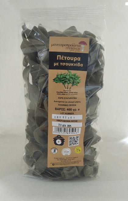 Σπιτικά ζυμαρικά με φρέσκα αυγά, φρέσκο γάλα και 100% άλευρα και σιτηρά από τα Γρεβενά! Η παράδοση σε μια πιο μοντέρνα γευστική εκδοχή, πέτουρα με Τσουκνίδα!!! Η τσουκνίδα είναι πλούσια σε βιταμίνες, ασβέστιο και έχει ισχυρή αντιοξειδωτική δράση!!! Έτοιμα σε 3 – 4 λεπτάκια, ιδανικά με μία κόκκινη σάλτσα, λαχανικά ή και κρέας!!!
