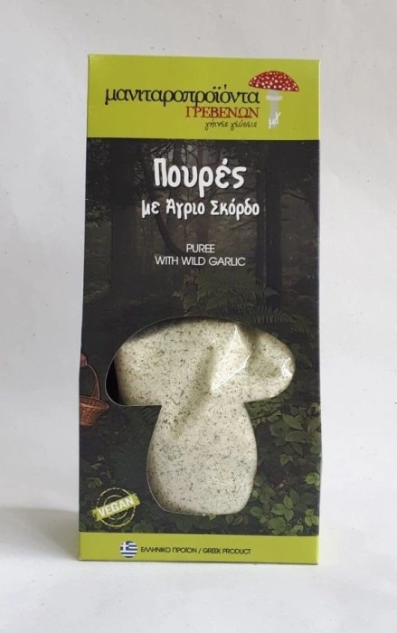 Στην περιοχή μας το άγριο σκόρδο, λέγεται και αρκουδόσκορδο, γιατί το τρώει η αρκούδα για να πάρει ενέργεια… Και πως να μη το τρώει αφού είναι γεμάτο με θρεπτικά συστατικά… Η συλλογή του γίνεται την άνοιξη… Μόλις συλλεχθεί το αφυδατώνουμε και το χρησιμοποιούμαι σε αρκετά προϊόντα μας, όπως και στον πουρέ πατάτας με άγριο σκόρδο… Η κάθε συσκευασία έχει 6 μερίδες και χρειάζεται 1 λίτρο γάλα, λίγο αλάτι και βουτυράκι, επίσης στην περίοδο της νηστείας μπορείτε να τον κάνετε με νερό…