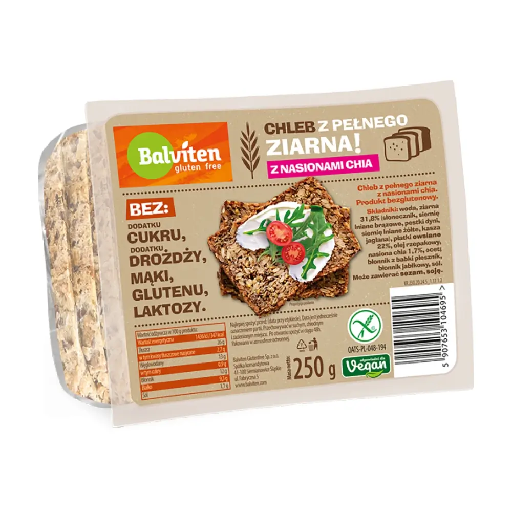 Νερό, 31,8% σπόροι (ηλιόσπορος, καφέ λιναρόσπορος, κολοκυθόσπορος, κίτρινος λιναρόσπορος, κεχρί), 22% νιφάδες βρώμης, κραμβέλαιο, σπόροι τσία 1,7%, ρυθμιστής οξύτητας (οξικό οξύ), φυτικές ίνες από ψύλλιο, φυτικές ίνες μήλου, αλάτι.